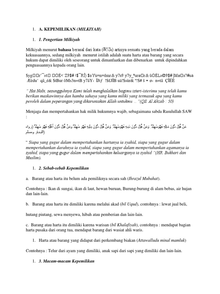 Buku Fikih Ma 10 Siswa Pages 101 150 Flip Pdf Download Fliphtml5 from online.fliphtml5.com Sudah diterangkan, bahwa salah satu dari sebab pemilikan atau malakiyah atau tamalluk, ialah : Pengertian ihrazul mubahat (barang bebas), maksudnya yaitu bolehnya seseorang mempunyai harta yang tidak bertuan (belum dimiliki oleh seseorang atau. Menganalisis praktek kepemilikan dan aqad yang tidak sesuai dengan syariat. Contoh dari ihrazul mubahat ini adalah orang yang mencari ikan di laut, mengambil pasir di sungai, atau kayu di hutan liar. Pengertian dan contoh ihrazul muhabat. Ihrazul mubahat (penguasaan harta bebas). Sementara contoh kepemilikan yang diperoleh secara tidak sah adalah hasil korupsi, suap ihrazul mubahat artinya memiliki sesuatu (benda) yang menurut syara' boleh dimiliki. Pengertian ihrazul mubahat (barang bekas), makdunya adalah boleh seseorang memiliki harta yang tidak bertuan (belum dimiliki oleh seseorang atau kelompok).